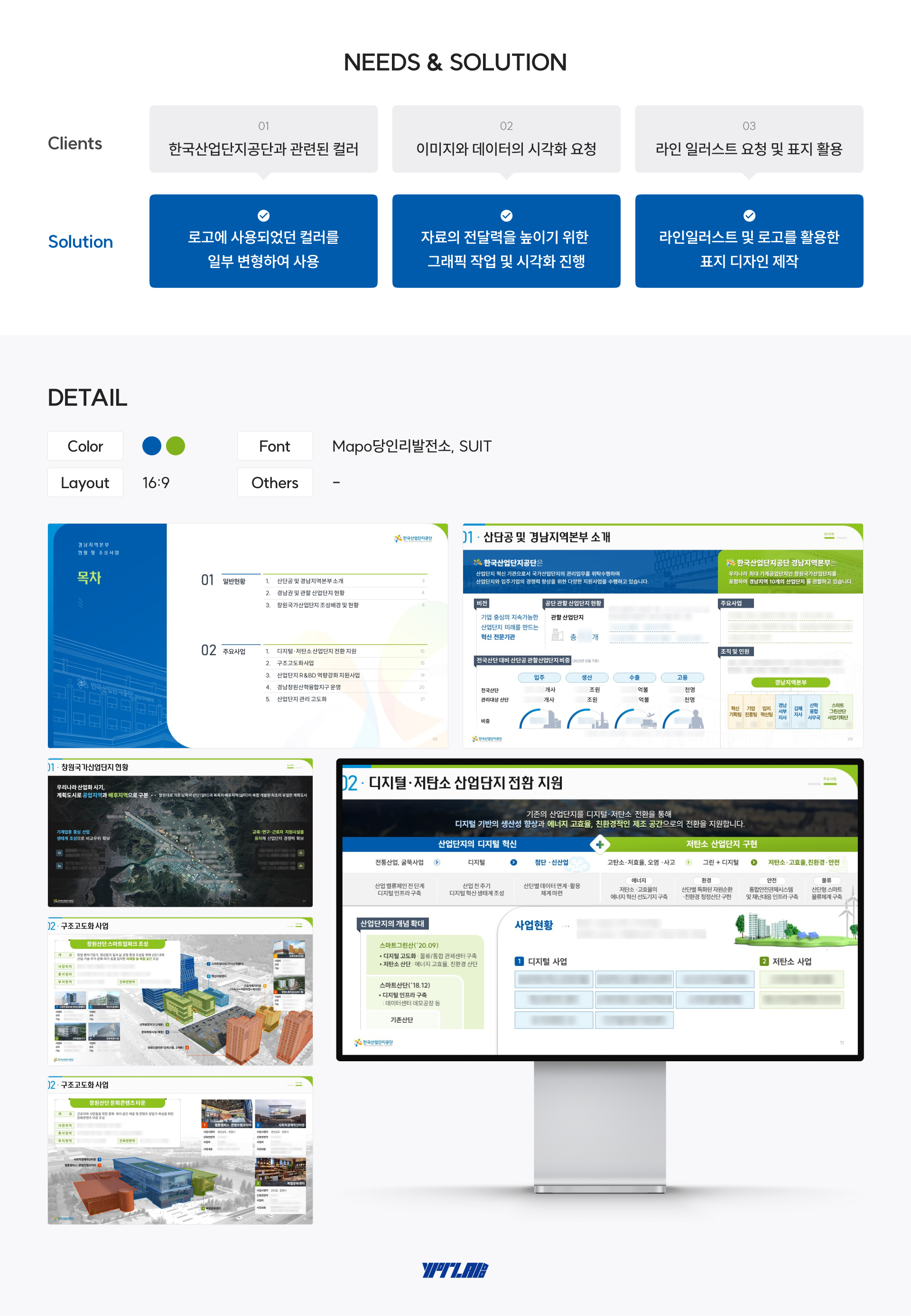 한국산업단지공단 경남지역본부 현황 및 주요사업 PPT 제작 overview 1. 다수의 이미지 및 데이터를 활용한 보고 자료 2. 맞춤형 일러스트 제작 진행 경남지역본부의 현황과 주요 사업을 다루는 데 있어, 다양한 이미지와 데이터를 활용하여 시각적으로 명확하게 전달되도록 고려했습니다. 또한, 한국산업단지공단의 전경을 라인 일러스트로 표현하여 표지에 활용했습니다. 전반적으로 무겁지 않으면서도 풍성한 느낌의 PPT를 구성하는 데 주력했습니다. 클라이언트 한국산업단지공단 경남지역본부 작업기간 2주 작업분량 23 슬라이드 카테고리 소개서 본문 이전글 현대일렉트릭 코엑스 전시회 발표자료 다음글 개인 포트폴리오 | 최**님