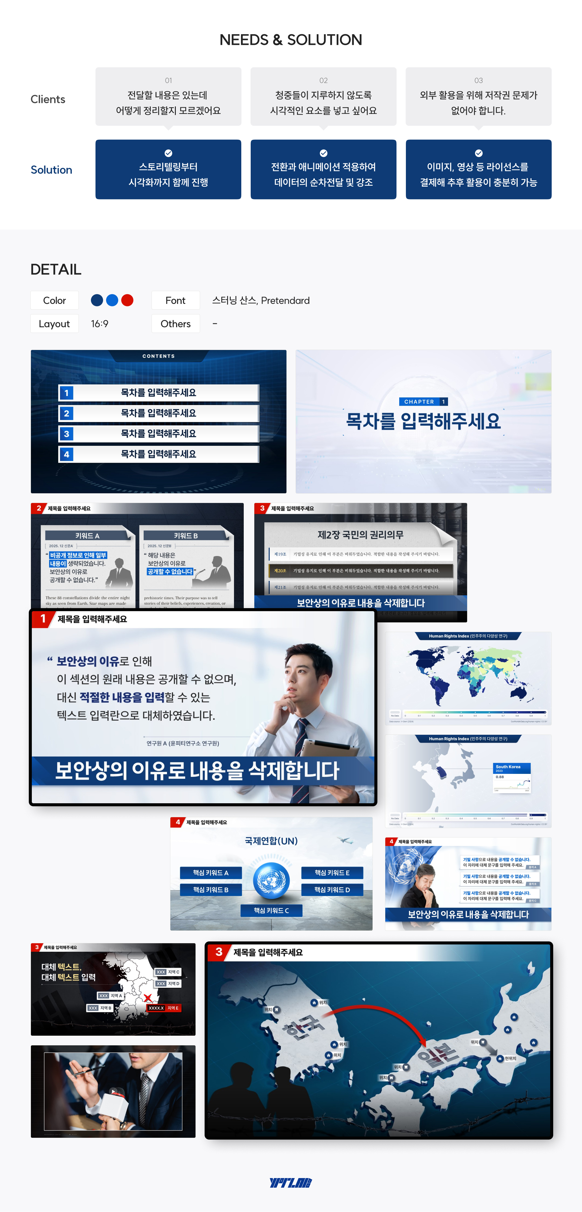 서울대학교 행정대학원 : 발표자료 제작 overview 1. 공공기관의 교육자료로서 뉴스 형태의 디자인 채택 2. 전환 및 애니메이션을 활용하여 시각요소 극대화 교육 내용의 흐름을 전달받고, 클라이언트님의 전달의도에 따라 스토리테링과 디자인을 함께 기획하여 작업인 프레젠테이션으로, 교육의 퀄리티를 높이기 위해 전환과 애니메이션을 활용하여 청중들에게 시각적인 표현과 몰입을 고려하여 제작된 프레젠테이션입니다. 클라이언트 서울대학교 행정대학원 작업기간 6주 작업분량 80여 슬라이드 카테고리 교육용 발표자료 본문 다음글 국내 대형 전시회(2025)